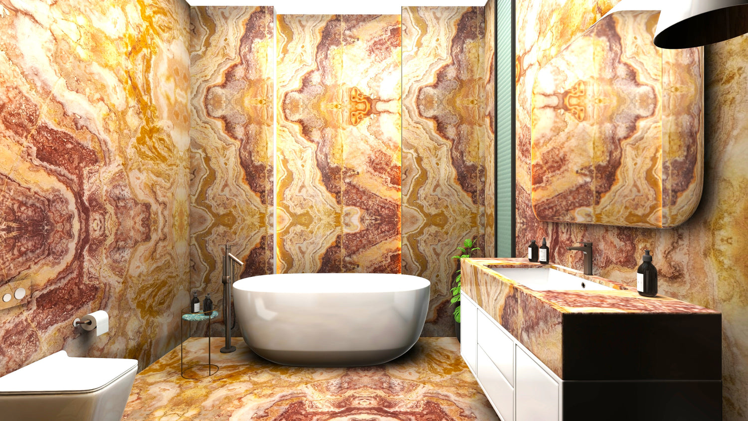 Onyx, a mesmerizing natural stone, exhibits translucent layers that create a stunning play of light. Its exquisite beauty makes it a sought-after choice for elegant interiors and luxurious decor