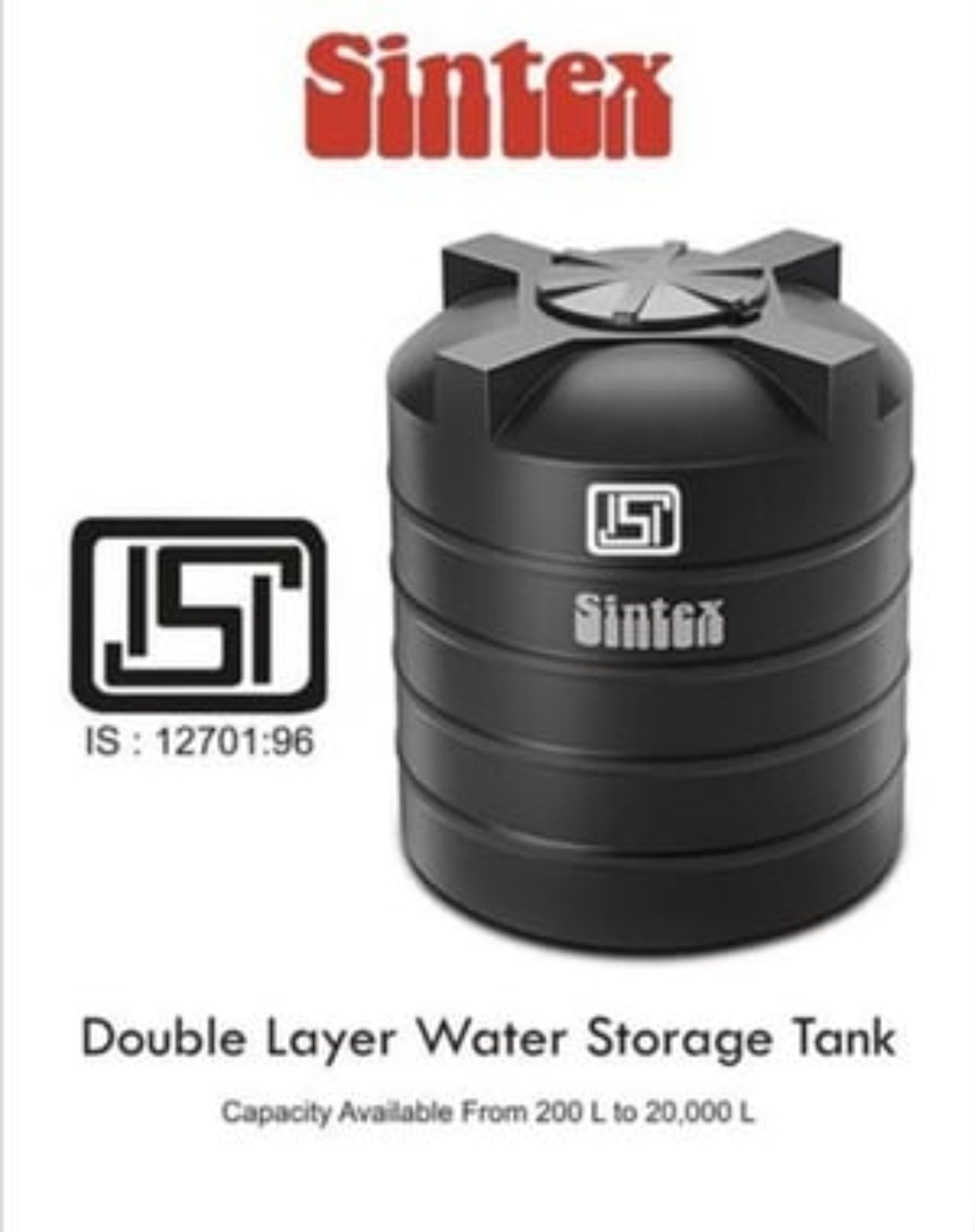 Sintex ISI Water Tanks are high-quality water storage solutions designed to meet Indian Standards (ISI). These tanks are known for their durability, reliability, and adherence to strict quality standards, making them a trusted choice for safe and efficient water storage in residential and commercial applications.